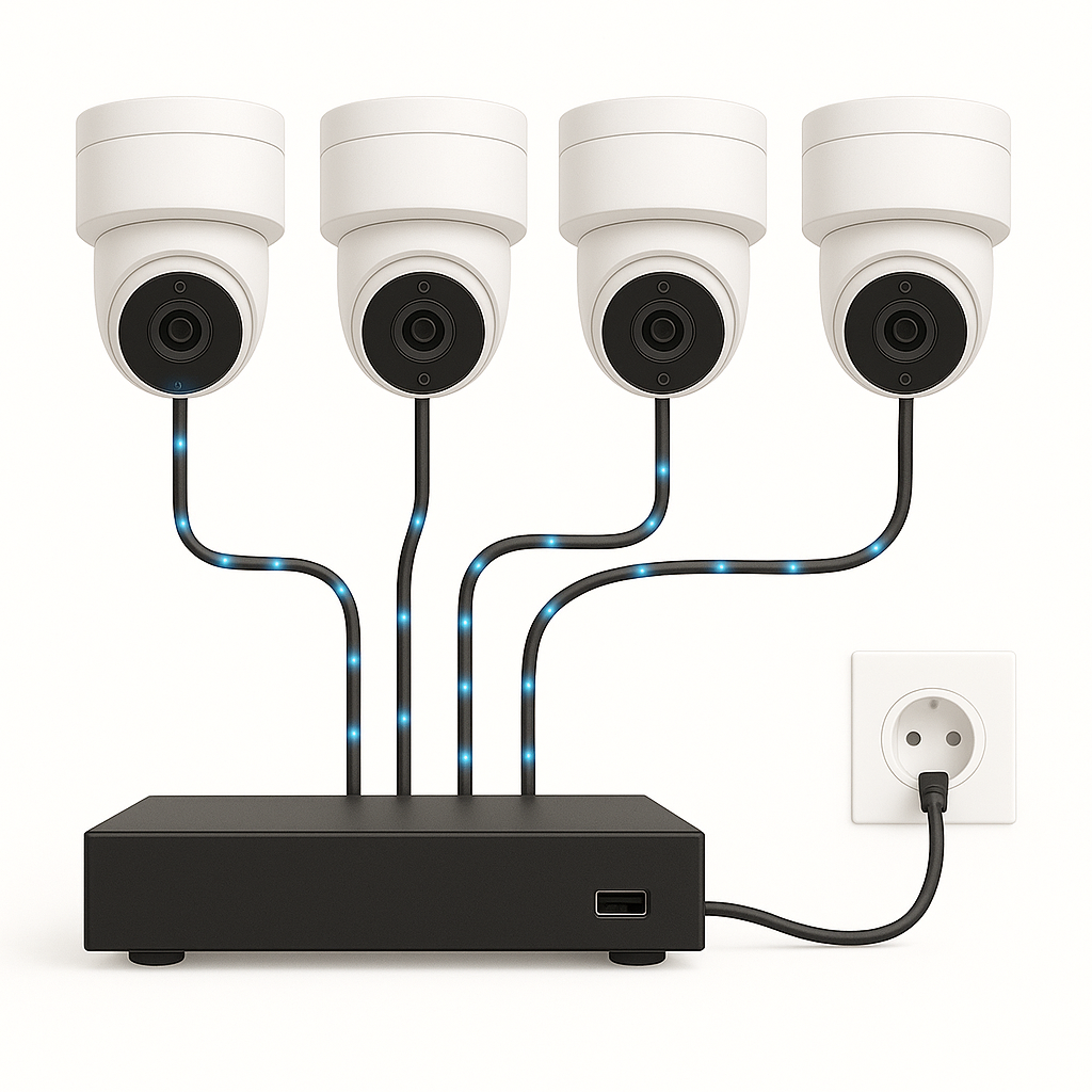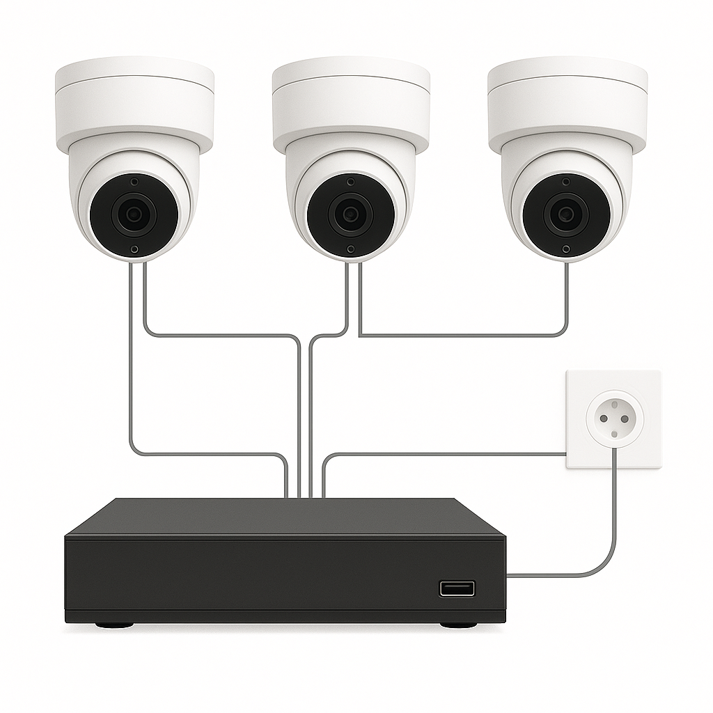 Unsere kabelgebundenen Systeme nutzen Power over Ethernet (PoE). Ein einziges Netzwerkkabel pro Kamera reicht für Stromversorgung und Bildübertragung aus – ganz ohne separate Steckdose. Dadurch ist die Installation besonders einfach und das Ergebnis äußerst sauber. ✅